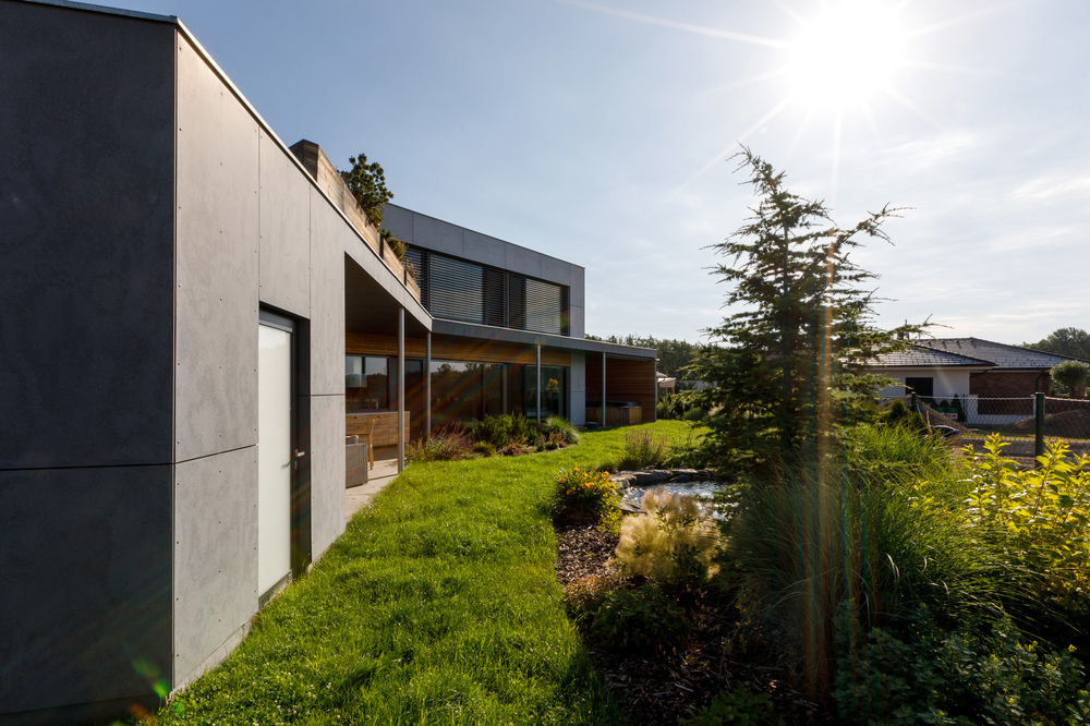 „Pred dvadsiatimi rokmi som kreslil dom pre otca investora, môjho spoluhráča z hokeja. Samozrejme, že ma potešilo, keď sa na mňa obrátili so synom, aby som navrhol dom aj pre ďalšiu generáciu,“ hovorí Ing. Josef Vostracký. Pre syna vyprojektoval štýlovo aj energeticky úsporný dvojpodlažný dom s dispozíciou 5+kk, otvorený slnku aj zeleni, napriek tomu s dostatočným súkromím a pohodlím na zastrešených terasách.