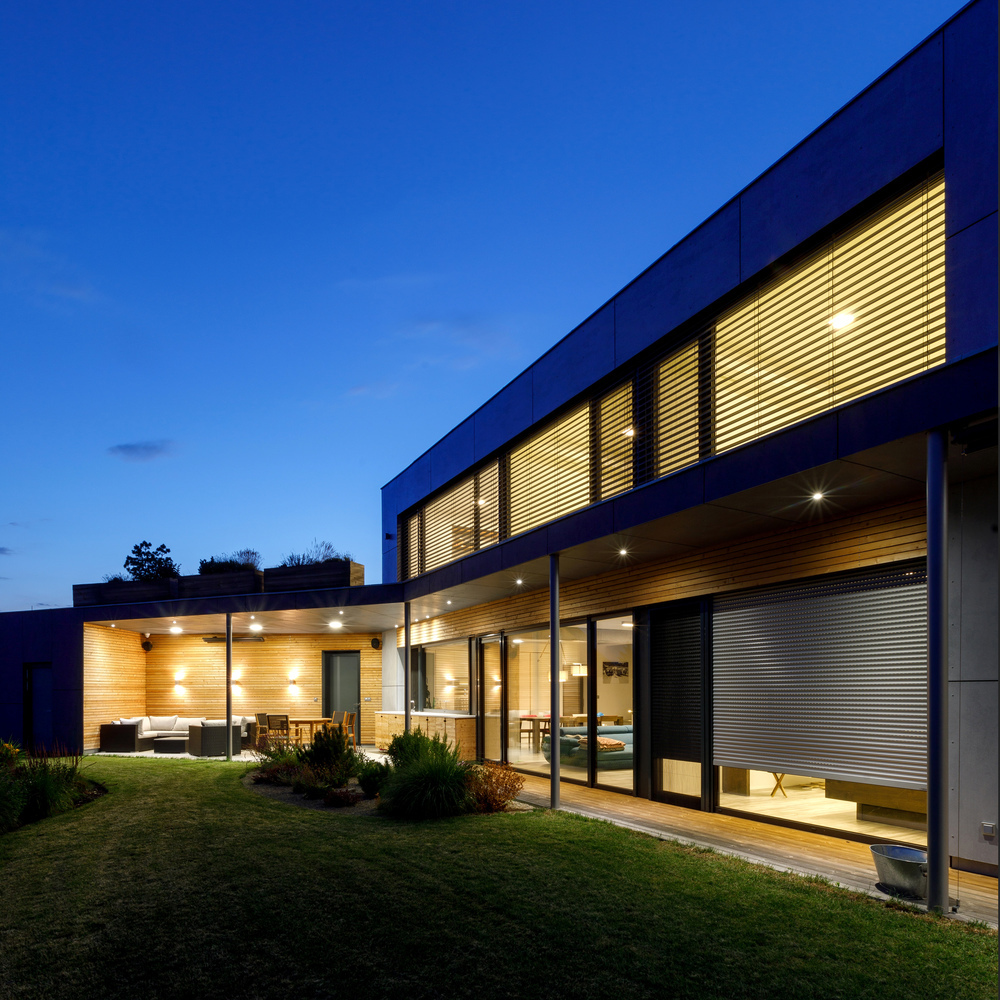 A, samozrejme, s využitím najmodernejších technológií, ako sú elektricky ovládané hliníkové okenné systémy Schüco s trojitým tepelnoizolačným sklom, ktoré presvetlili celú južnú stranu domu. Alebo tepelnoizolačné murivo HELUZ FAMILY, vďaka ktorému dom vyhovel nárokom na štátnu dotáciu. „Inteligentným elektroinštaláciám som sa prv bránil, pretože nie som práve fanúšikom toho, keď sa všetko ovláda cez telefón. Presvedčili ma však a som za to rád, je to oveľa pohodlnejšie riešenie,“ hovorí spokojný majiteľ.