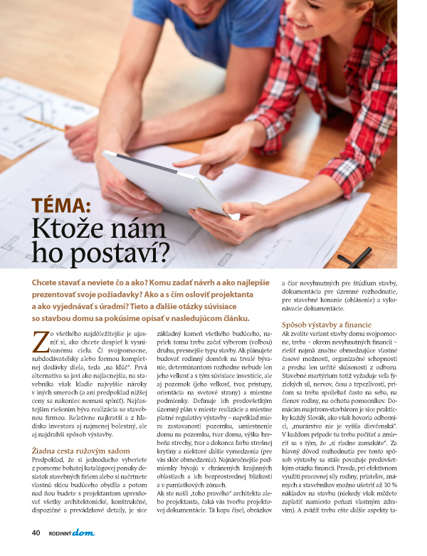Otázky súvisiace so stavbou domu a výberové konanie na spoľahlivého dodávateľa stavby