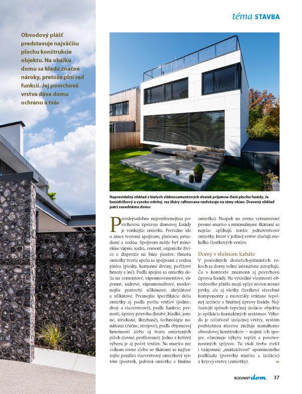 36 – Téma: Odolné fasády: Na obálku domu sa kladú znacné nároky. Dlhým životom bez nutnosti údržby sa už pýšia viaceré fasády