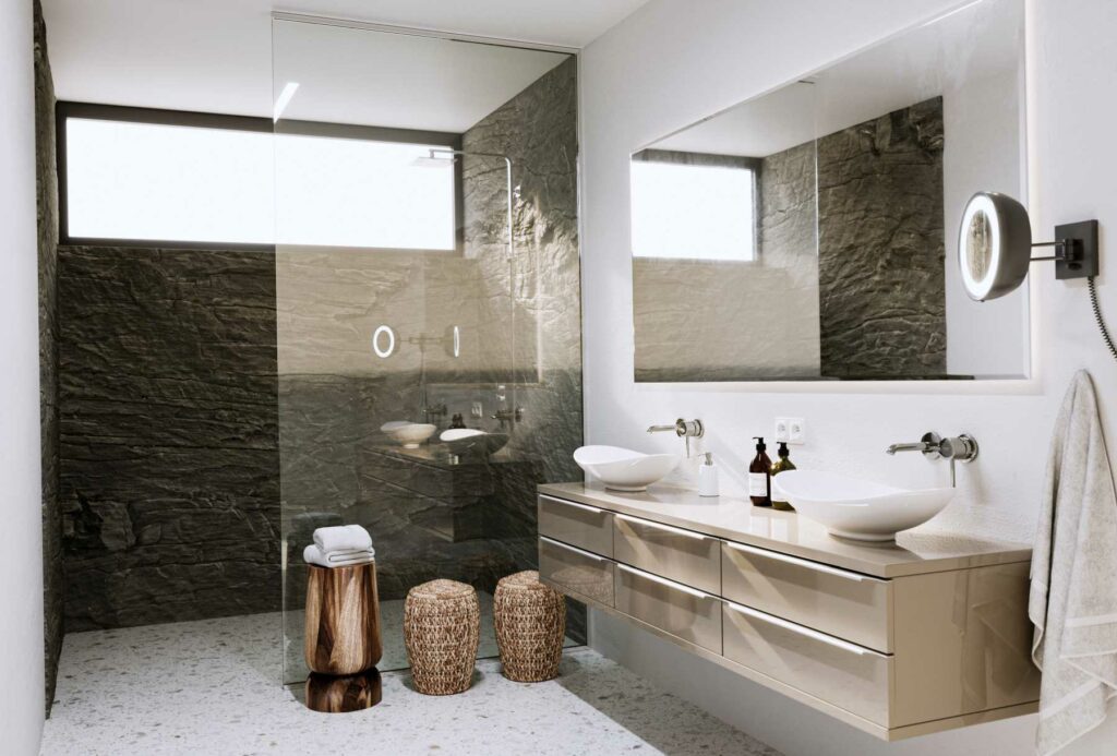 „Na čelnú stranu akrylátových dvierok T.acrylic je nalisovaná 1,4 milimetra hrubá vrstva akrylátu, ktorá je farebne totožná so zadnou stranou dvierok a aj ich hranami. Táto hrubá vrstva zaručuje veľmi hlbokú prefarbenosť povrchu, vďaka čomu je sýtosť cappuccinovej farby zaručená. Navyše je povrch dvierok T.acrylic UV stabilný, a tým stálofarebný, a preto nám kávový odtieň nikdy nevybledne. Praktickosť nábytku v kúpeľni podčiarkuje ako samotné ohraňovanie materiálu PUR lepidlom, ktoré zaisťuje odolnosť voči pôsobeniu vlhka a tepla až 100°C, tak aj opraviteľnosti drobných poškodení v lesklom povrchu,” popisuje Martin Dusík, vedúci obchodného oddelenia spoločnosti Trachea, tradičného výrobcu nábytkových dvierok, a pokračuje: „Dvierka v cappuccinovom farebnom prevedení zachovajú kúpeľni na pohľad svetlosť a vzdušnosť, ale na rozdiel od často využívanej bielej varianty jej dodajú na jemnej útulnosti.”