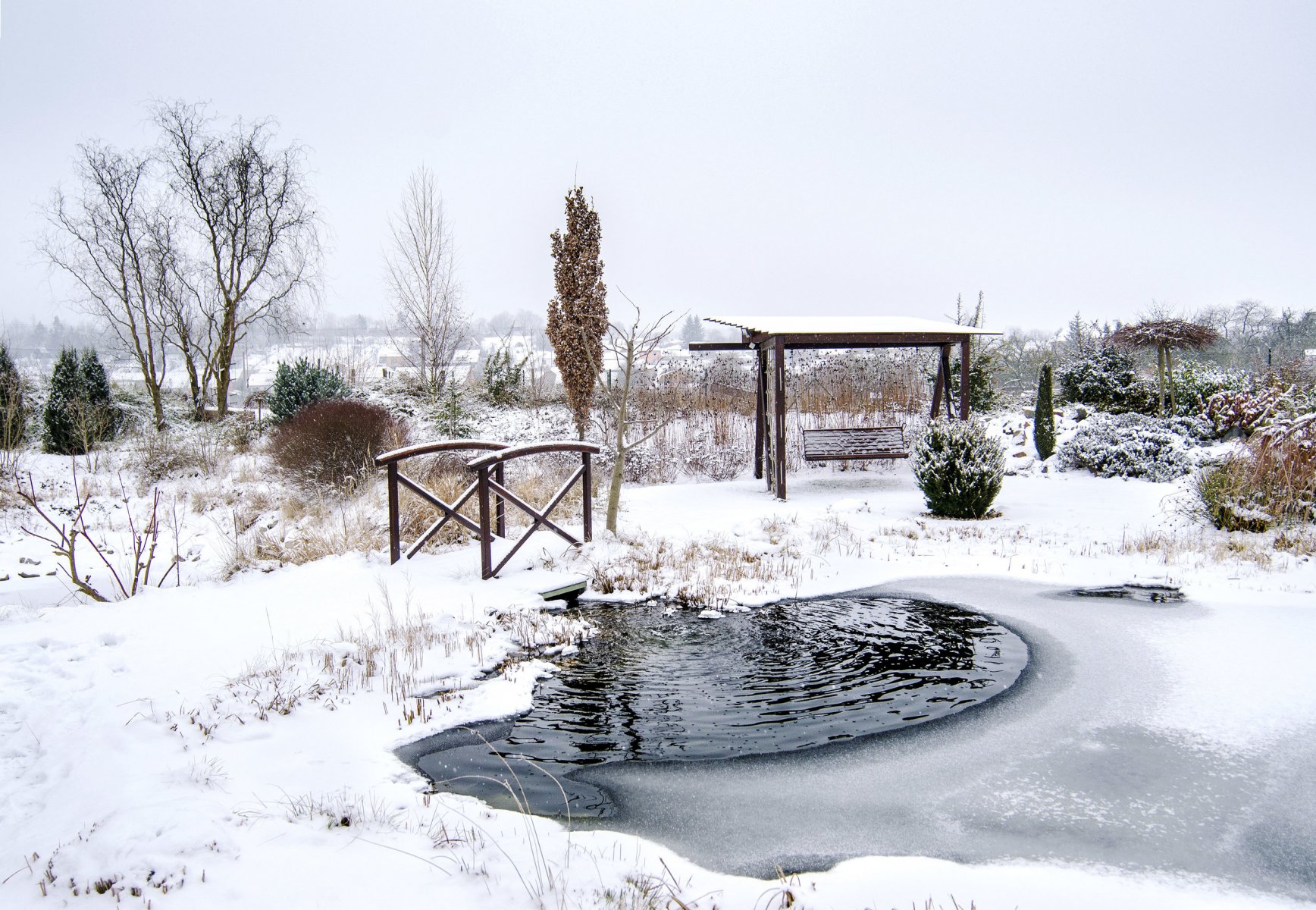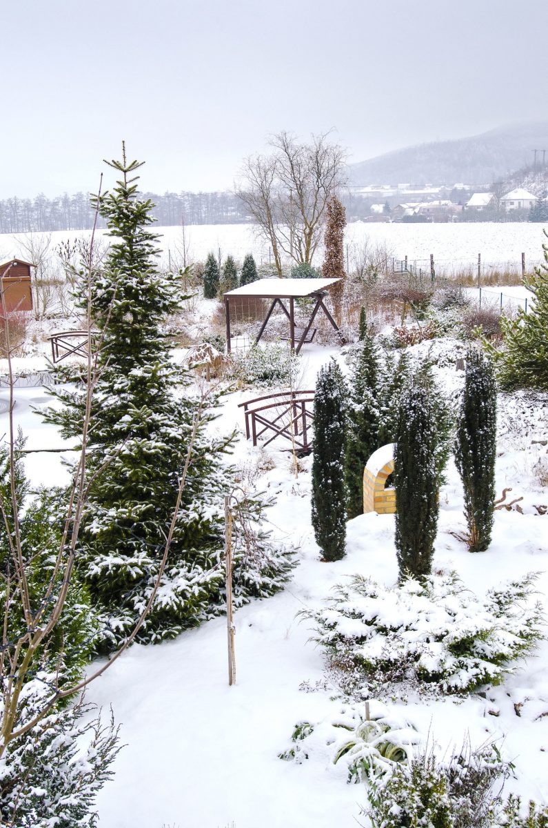 Aj keď záhrada oddychuje zimným spánkom a na pohľad pripomína polárnu krajinu, svojim tvorcom slúži ako miesto na dokonalý únik od starostí všedných dní. Stačí sa len teplo obliecť a vyraziť na prechádzku medzi stromy alebo k zurčiacemu jazierku.
