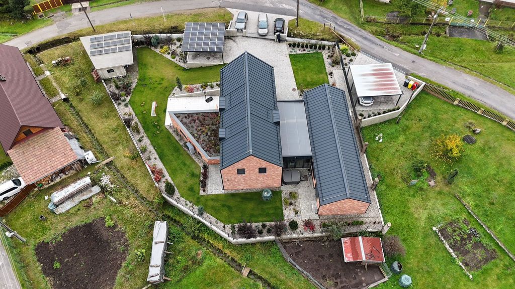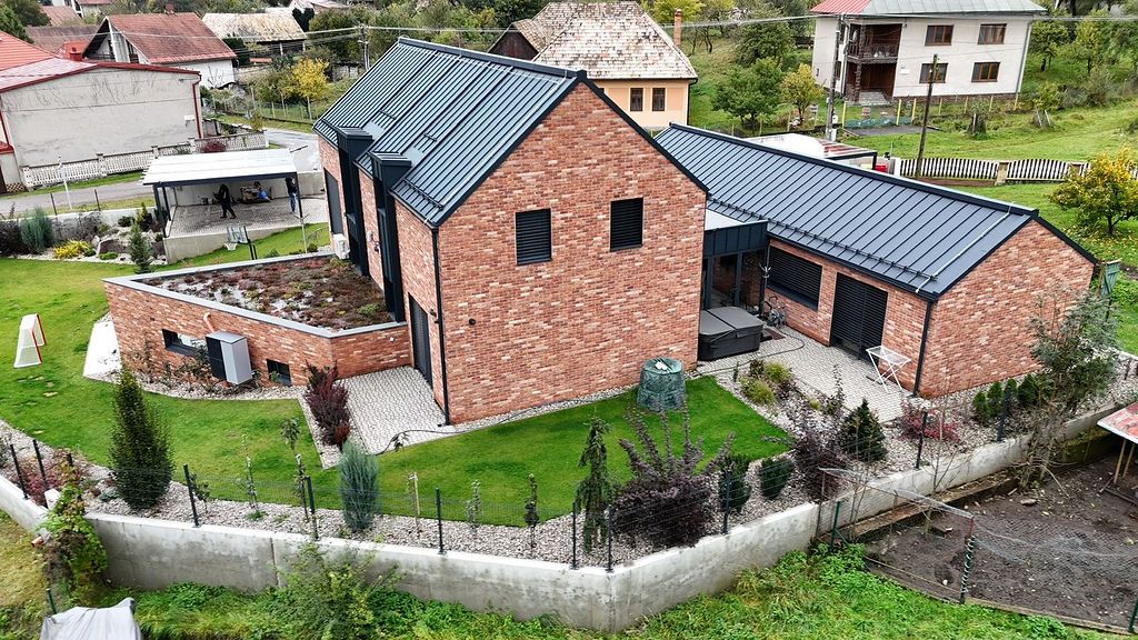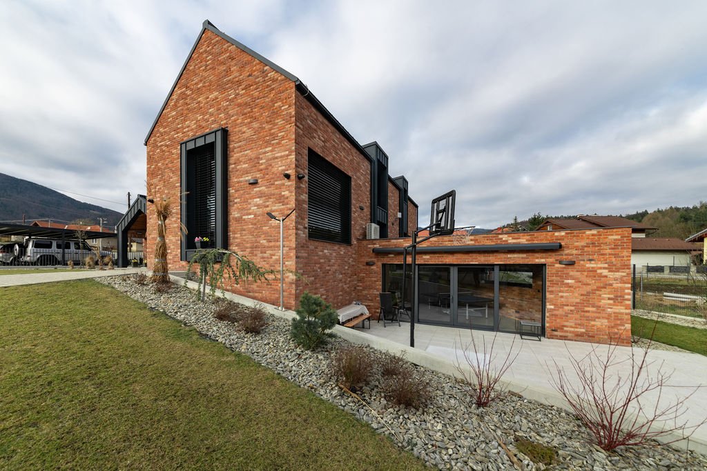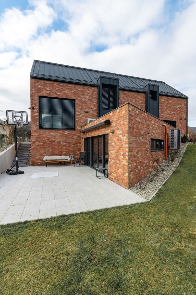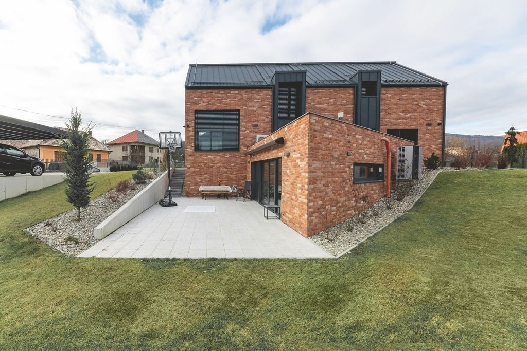 Moderné rodinné bývanie v obci Jasenie ponúkajú dva paralelne položené tradične tvarované domy so sedlovými strechami a spojovacou časťou uprostred. Slúžia trom generáciám jednej rodiny. Väčší z nich obýva investor s dvoma synmi, menší je pre rodičov. Hlavné krídlo má dve podlažia, dole je dvojizbový byt s obývačkou, spálňou, kuchyňou a kúpeľňou. O poschodie vyššie ležia izby synov. Dole je ešte jedna miestnosť na relaxovanie s pingpongovým stolom. Rodičia majú v prízemnom krídle k dispozícii tri izby s príslušenstvom. Medzi oboma domami vznikla multigeneračná obývačka úzko prepojená so záhradou. Dom je postavený z kompletného tehlového systému HELUZ, a to konkrétne z radu HELUZ Family 2in1. Konštrukcia je jednovrstvová, čo zachováva vysokú kvalitu domu a dlhodobú udržateľnosť a prepožičiava mu harmonický súbor funkčných vlastností ako je tepelná izolácia, tepelná akumulácia, zotrvačnosť a difúzna otvorenosť. Aj napriek atypickým detailom tu jednovrstvová konštrukcia našla uplatnenie. vykuruje sa tepelným čerpadlom a fotovoltikou.