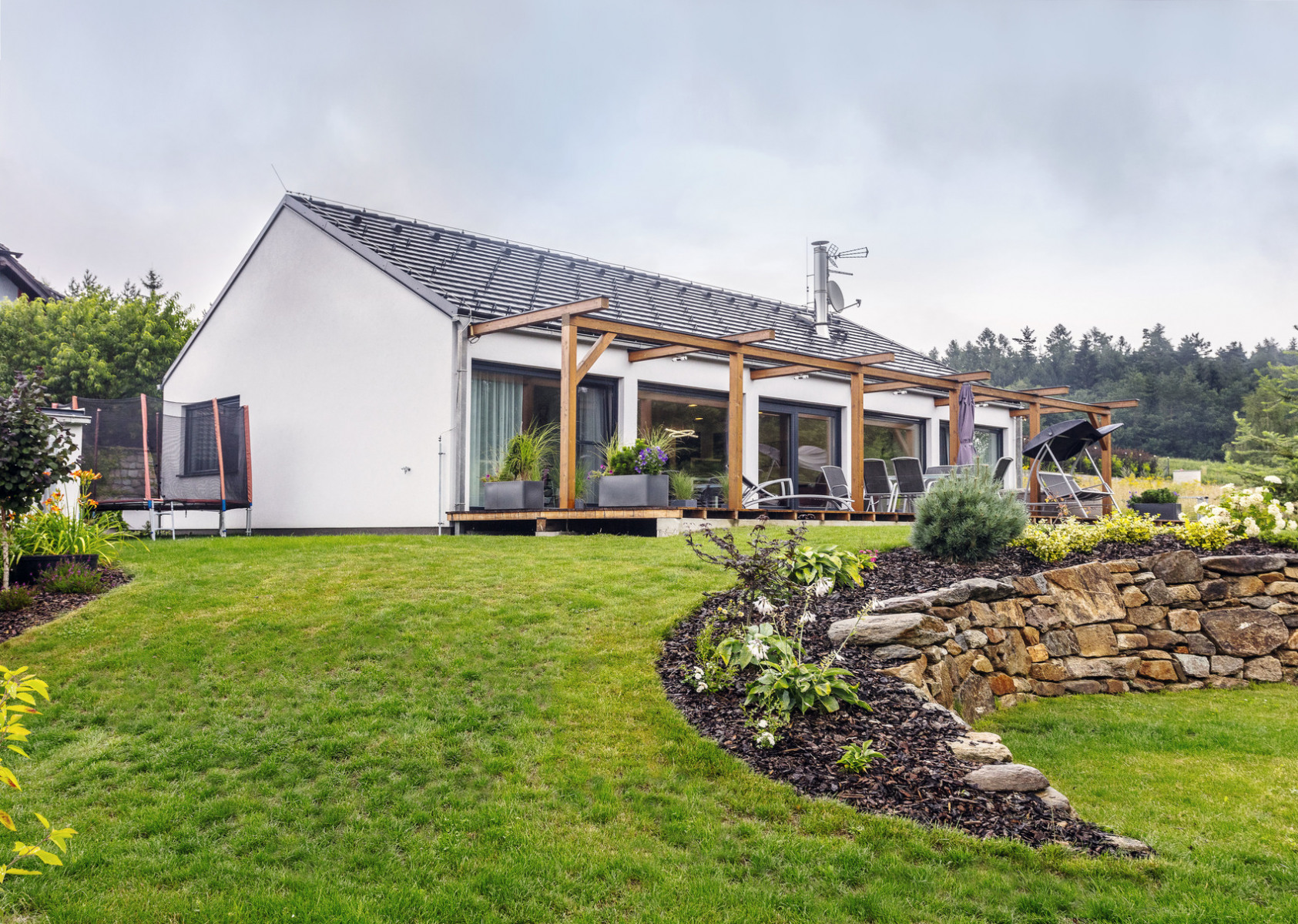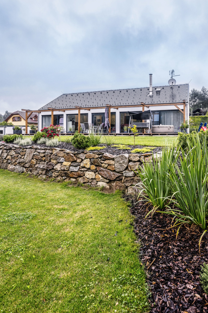 Stavebníci pozemok kúpili už pred rokmi, plná pracovná vyťaženosť však spôsobila, že projekt domu tvorili s architektom s prestávkami päť rokov. Až keď boli s výsledkom spokojní, začali pátrať po stavebnej firme. „Počas hľadania sme narazili na spoločnosť, ktorá stavia drevostavby. Firma použila prepracované detaily z projektu svojho bungalovu a s prihliadnutím k nášmu projektu vznikol atypický rodinný dom,“ vysvetľuje pán domu okolnosti vzniku domu.