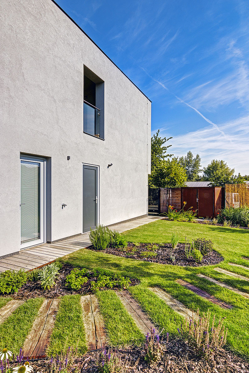 Absencia kanalizačného radu v inkriminovanej časti ulice a chýbajúca prípojka elektriny vyjasnili záhadnú cenu parcely. „Spolu s investorom a obcou sme našli optimálne riešenie, ktorého výsledkom je dom pripojený na inžinierske siete, vrátane plynu,“ dodáva architekt.