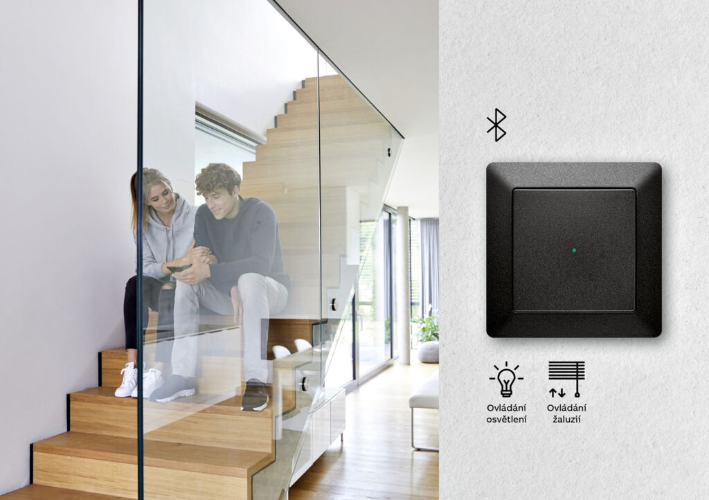 Vypínač Zoni pre systém inteligentnej elektroinštalácie ABB-free@home® pre ovládanie osvetlenia a predokenných žalúzií, dizajn je zladený s radom štandardných vypínačov a zásuviek Zoni (ABB) ovládanie osvetlenia, ovládanie žalúzií