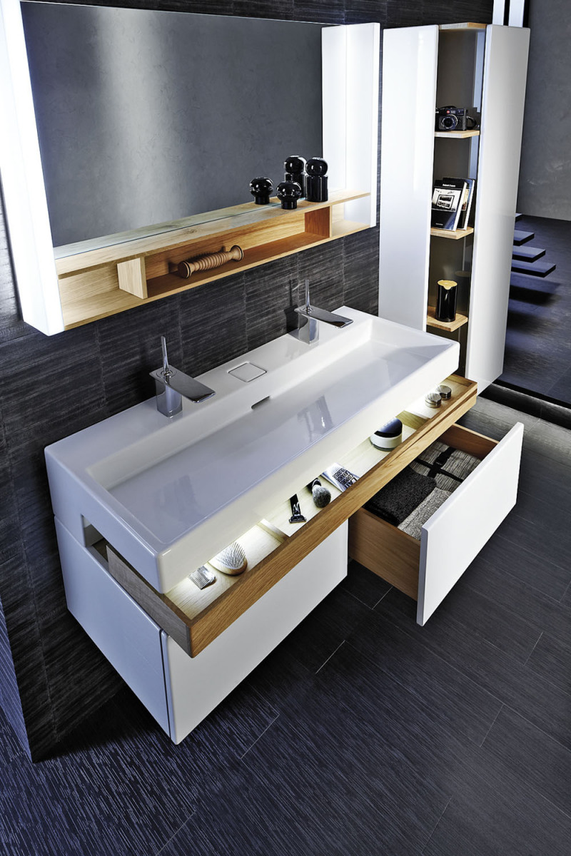 Zvoľte rozmer úmerný veľkosti kúpeľne (pokojne aj šírku 70100 cm), doprajte si dostatok voľného priestoru pred umývadlom (ulička široká najmenej 90-100 cm) a denné svetlo, pretože tu budete tráviť čas pred zrkadlom. Vo veľkej rodinnej kúpeľni môžete použiť dvojumývadlo či dve oddelené umývadla.