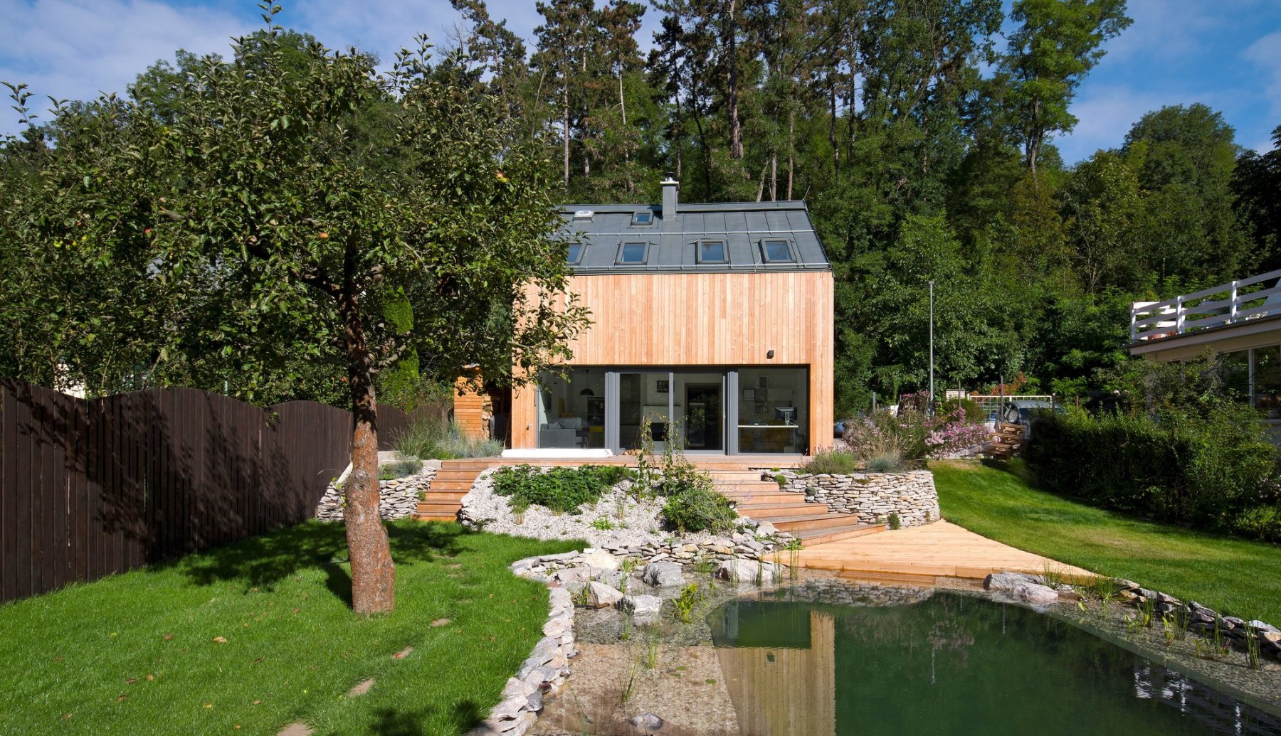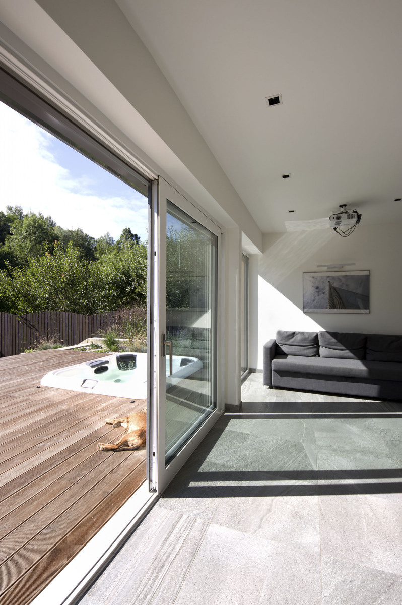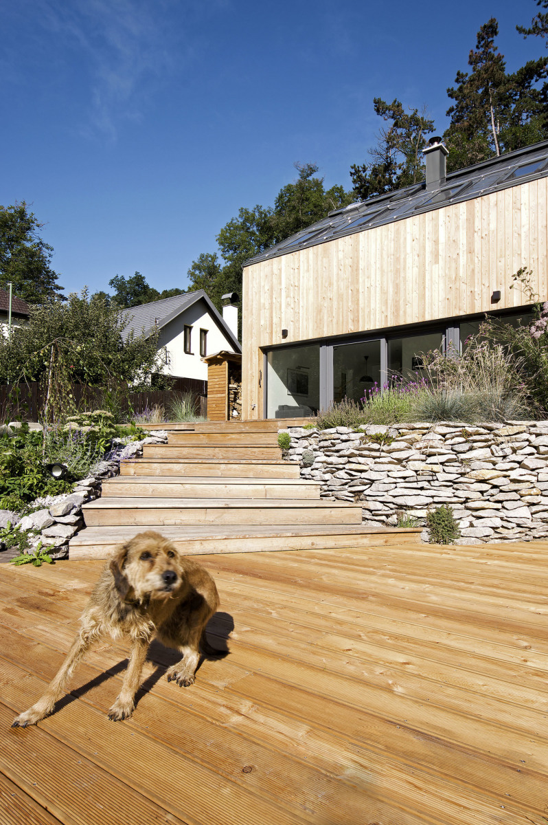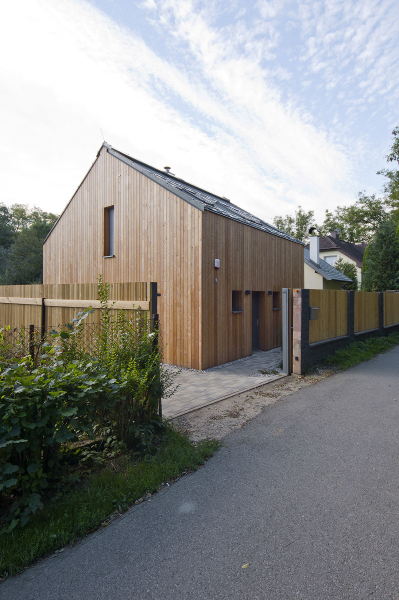 Pôvodným zámerom majiteľky bolo zbúrať murovanú chatku, ktorá na pozemku stála a v ktorej strávila niekoľko rokov v dobrodružných podmienkach. Chcela vybudovať úplne nový objekt na trvalé bývanie. „Vzhľadom na umiestnenie pozemku v chránenej krajinnej oblasti sme boli obmedzovaní mnohými regulatívmi, a tak sme hľadali inú cestu,“ hovorí architekt Martin Poldauf.