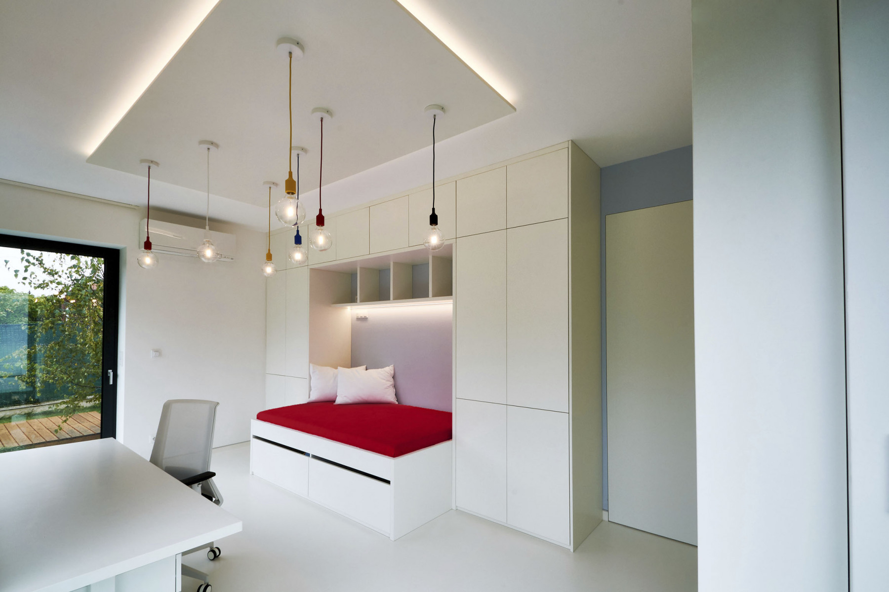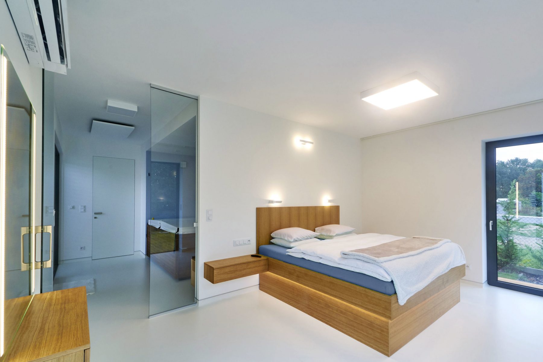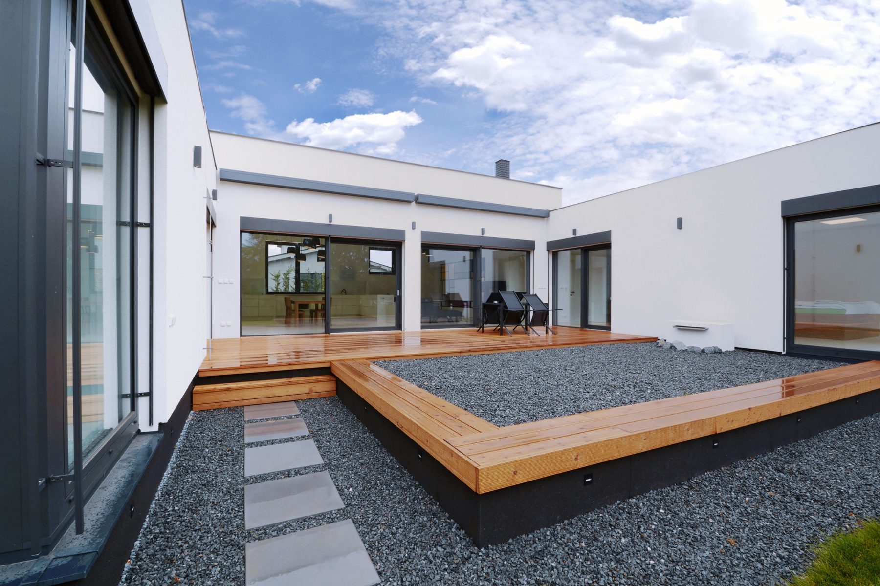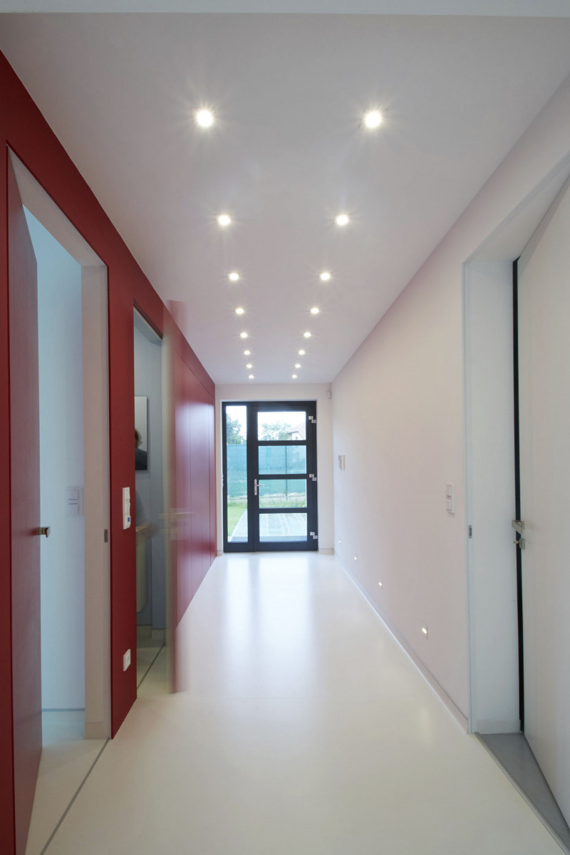 Prízemný dom postavený v novej zástavbe je navonok striedmy a geometrický, vnútri je tento smer ešte viac umocnený. Hlavnými prvkami návrhu sú z obytného priestoru prístupná, južne orientovaná terasa s výhľadom do existujúcej zelene, panoramatické rohové okná do záhrady a vnútorná vírivka. Súčasťou domu je garsónka so samostatným vstupom a vlastným zázemím pre seniora.