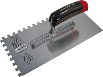 Ozubenú hladiacu lyžicu Maurerlob E8 využijete na nanášanie, hladenie, rozdeľovanie a roztieranie lepidiel pri kladení dlažieb a obkladov stien. Cena 5,95 €, www.hornbach.sk