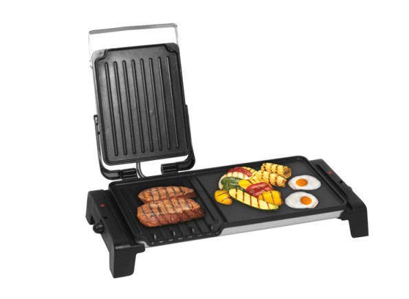 Elektrické grily majú hladkú platňu i rošt (napríklad Orava EG-1900) a praktickú odkvapkávaciu misku na prebytočné tuky z mäsa a údenín, do ktorej by však mali stekať z aspoň trochu naklonenej platne, aby reálne slúžili tomu, na čo majú.