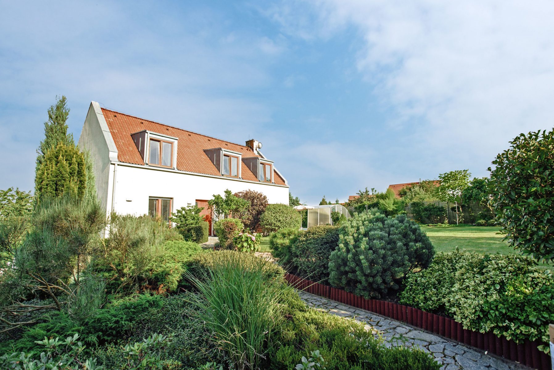 Nechýba priestranná garáž, zastrešený bazén a terasa, kde sa griluje a odpočíva. Autorka návrhu Lenka Vyhnálková považuje za nespornú výhodu ústretovosť a dôveru majiteľov a možnosť pracovať na návrhu záhrady spoločne s projektantmi rodinného domu a stavebníkmi.
