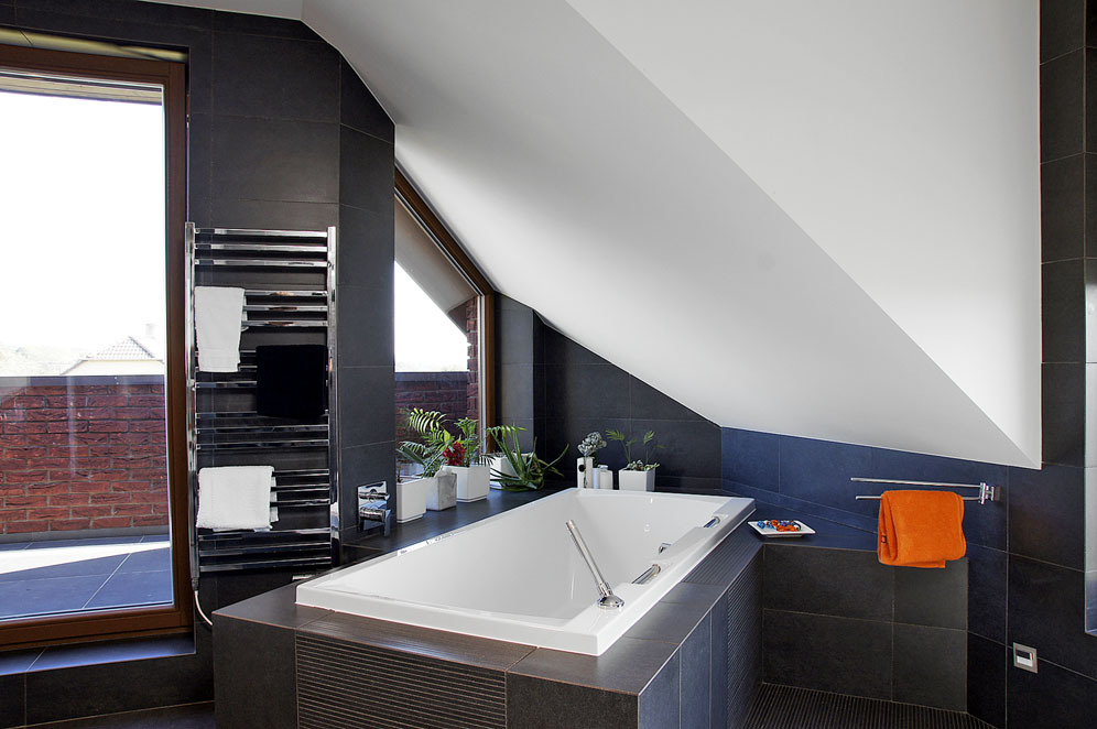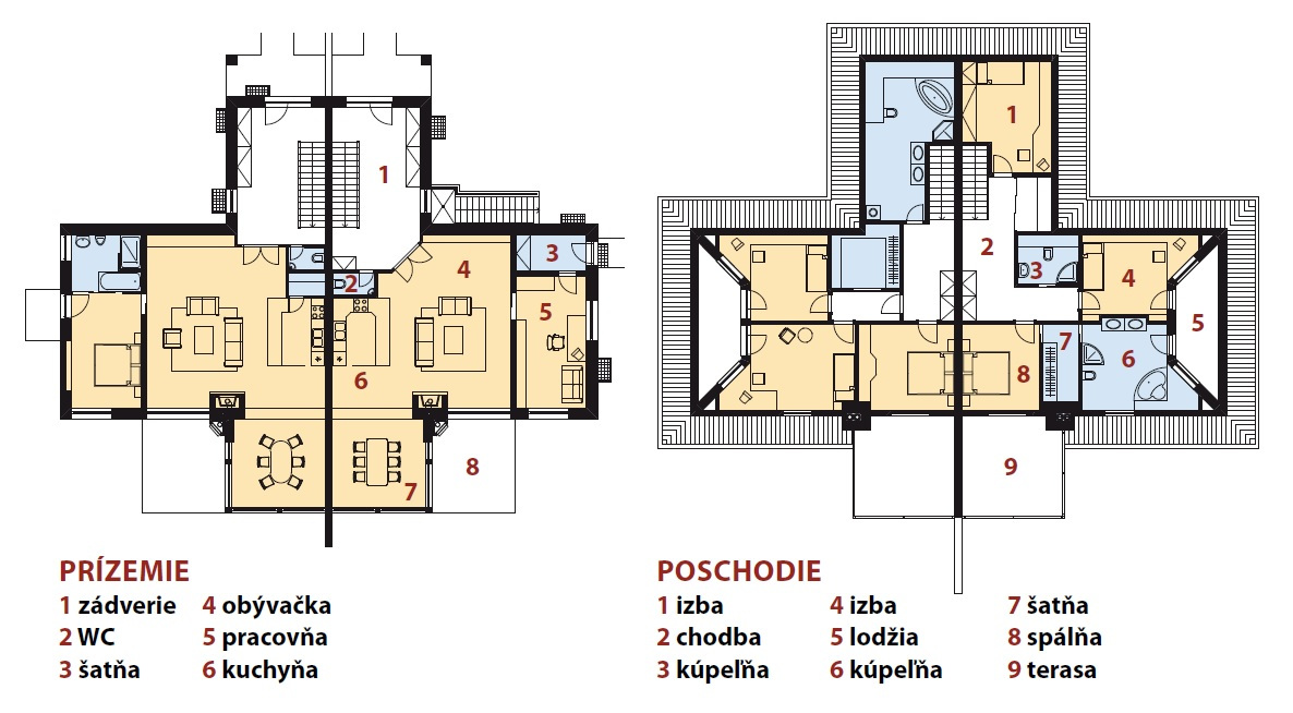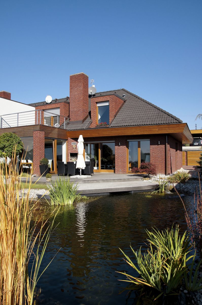 „Jeho práce, ktoré sme mali možnosť vidieť, zodpovedali našim predstavám,“ vysvetľujú vznik projektu. „Rozhodli sme sa spolu so známymi pre dvojdom. Naša parcela bola na tento účel vhodná, ušetrili sme miesto. Okrem menšieho pozemku je výhodou dvojdomu aj zníženie investičných nákladov a lacnejšia prevádzka domácnosti. Naše súkromie pritom nijako neutrpelo, vďaka zrkadlovému usporiadaniu dispozície a vyvýšenej záhrade o susedoch ani nevieme, a to ani vnútri domu, ani vonku na záhrade.“ A to doslova. Rovnaký názor má aj majiteľ druhej polovice domu. Počas našej návštevy vyžaroval z miesta až meditačný pokoj.