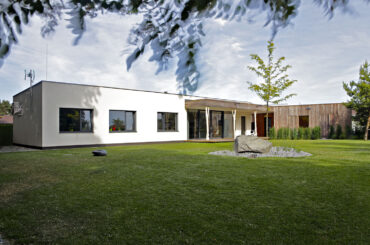 Pozemok pozvoľna spadá od okraja listnatého lesa smerom na východ a zo severnej strany je lemovaný príjazdovou komunikáciou. Architekt umiestnil dom tak, aby boli maximálne využité výhľady cez strechy okolitej zástavby až na horizont, kde sa pri peknom počasí objavujú obrysy Bielych Karpát. Pozemok je tak rozdelený na hornú časť pri […]