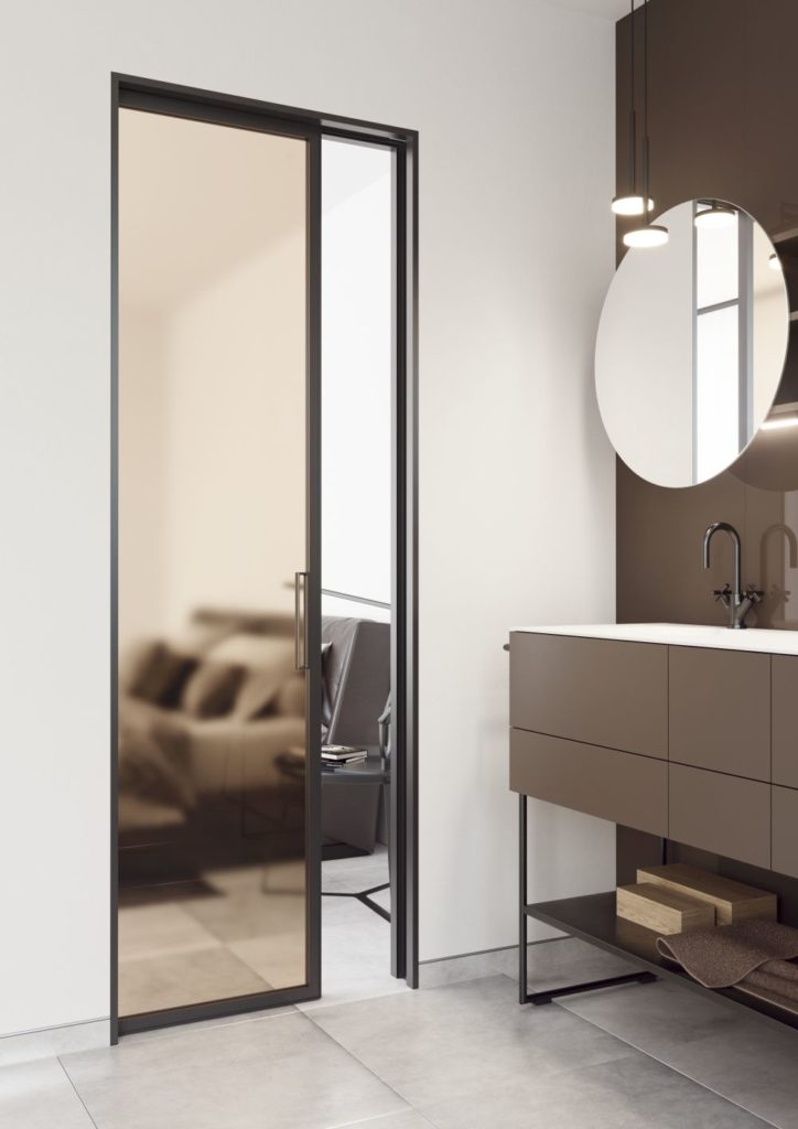 Úspora miesta i nadčasový minimalistický vzhľad – presne to interiéru dodajú bezzárubňové stavebné puzdrá na zasúvacie dvere.