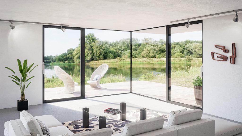 Dvere sa najčastejšie pohybujú po súbežnej koľajnici umiestnenej v konštrukcii rámu a výrazne šetria priestor. Ich hmotnosť je síce značná, v prípade kvalitného kovania, profilu i montáže sa však veľmi ľahko ovládajú. Celý systém možno doplniť o elektrické ovládanie, tienenie a najrôznejšie senzory. Pamätá sa aj na pasívny štandard. V tom prípade možno zvoliť systém PVC okenných a dverových profilov Inoutic Eforte, ktoré sú veľmi flexibilné, umožňujú presklenie na celú výšku miestnosti, ponúkajú individuálny výber typu zasklenia podľa požiadaviek zákazníka aj veľkú paletu farieb a dekorov verne imitujúcich drevo alebo kov, napríklad obojstranné metalické fólie s charakteristickým trblietavým efektom.