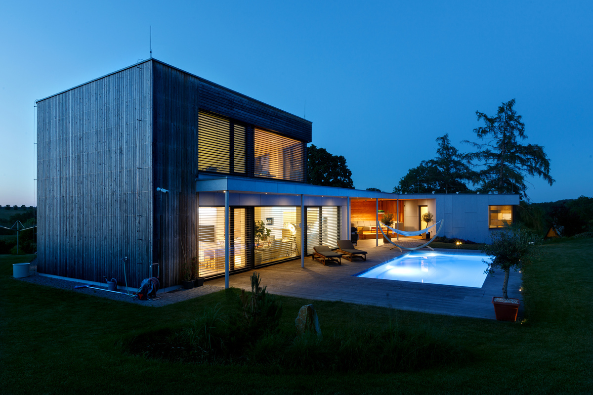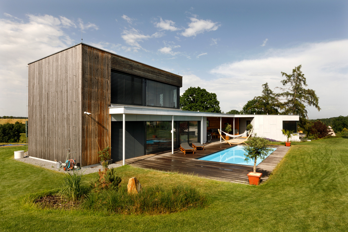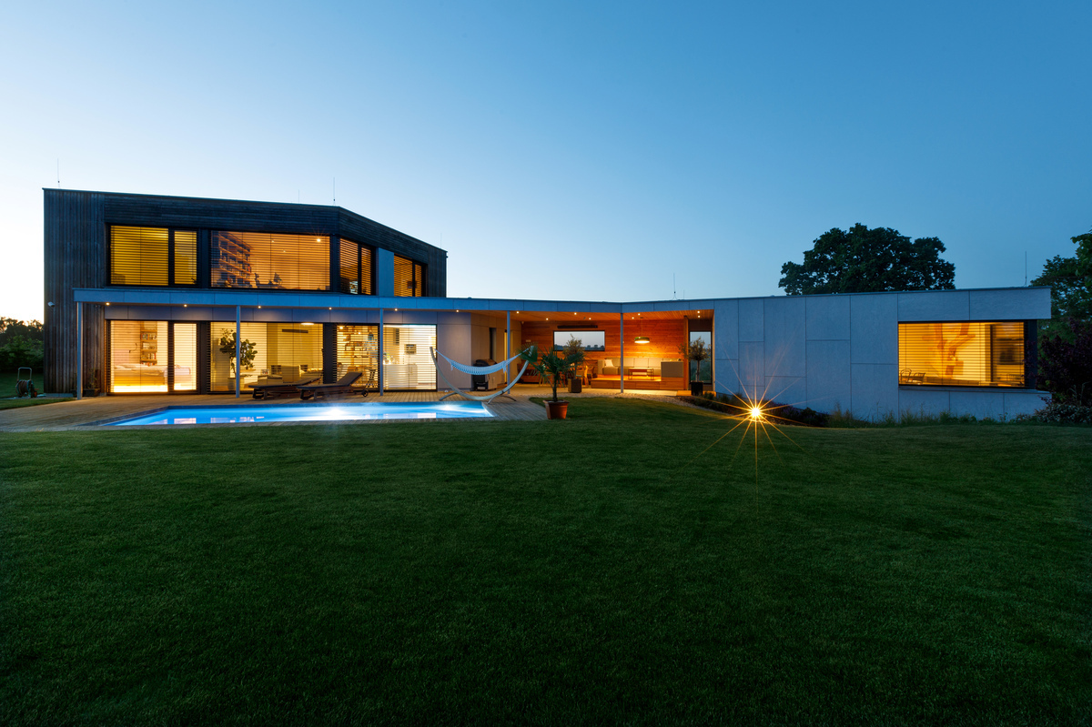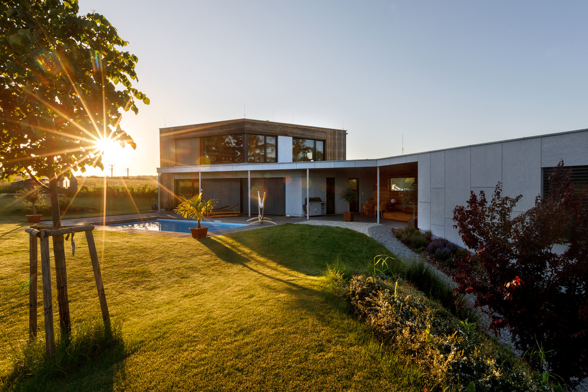 Nízkoenergetický dom (prešiel Blower door testom a získal zelenú dotáciu) s dokonalou dispozíciou a nadväznosťou na záhradu poskytuje krásne výhľady a originálnym tvarom skráteného ihlanu harmonizuje s atypickým pozemkom. Tehlová stavba s odvetrávanou fasádou obloženou smrekovcovými latami a fasádnymi doskami zaujme veľkými zasklenými plochami. Dom je rozdelený na dve časti prepojené terasou. Na obvodové steny s fasádnym obkladom boli použité tehly HELUZ FAMILY 25 a hliníkové okenné systémy s trojitým izolačným sklom Schüco. Podzemné podlažie je murované zo šalovacích vybetónovaných tvárnic, strop je železobetónový. Strecha je realizovaná z drevených KVH nosníkov, zateplená fúkanou izoláciou. Dom je vykurovaný tepelným čerpadlom s vrtom a podlahovým vykurovaním. Rekuperácia zlepšuje vnútornú mikroklímu a klimatizáciu v dome nahradzuje podlahové chladenie. Nainštalovaná bola inteligentná elektroinštalácia, vďaka ktorej sú ovládané žalúzie, osvetlenie, kúrenie aj zabezpečenie domu i hudba, ktorá sa šíri domom a navodzuje priateľskú atmosféru.