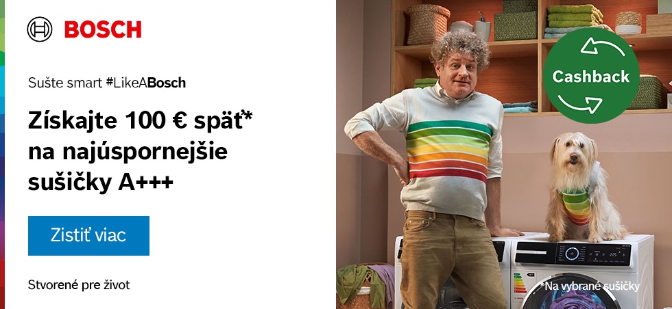 Značka Bosch teraz uvádza na trh niekoľko nových modelov v najlepšej energetickej triede A+++ s veľkou kapacitou a množstvom praktických funkcií. Napríklad 9kg model WQH245B2BY má ergonomicky naklonený panel s veľkým a ľahko čitateľným displejom alebo samočistiaci kondenzátor, ktorý zaručuje optimálnu energetickú účinnosť. Funkcia Auto Dry suší automaticky a presne na požadovaný stupeň suchosti a spotrebič dokáže optimalizovať nastavenia sušenia pre malé množstvo bielizne. Technológia Home Connect umožňuje sledovanie a ovládanie spotrebiča prostredníctvom aplikácie a ponúka ďalšie programy a funkcie, ako napríklad Smart Dry, pri ktorej sušička získava informácie o bielizni z práčky a podľa toho odporúča najlepšie nastavenia sušenia. K dispozícii je aj praktické vnútorné osvetlenie bubna alebo možnosť obráteného chodu bubna pri praní posteľnej bielizne či špeciálny program sušenia vlny s košom, ktorý je súčasťou tohto spotrebiča.