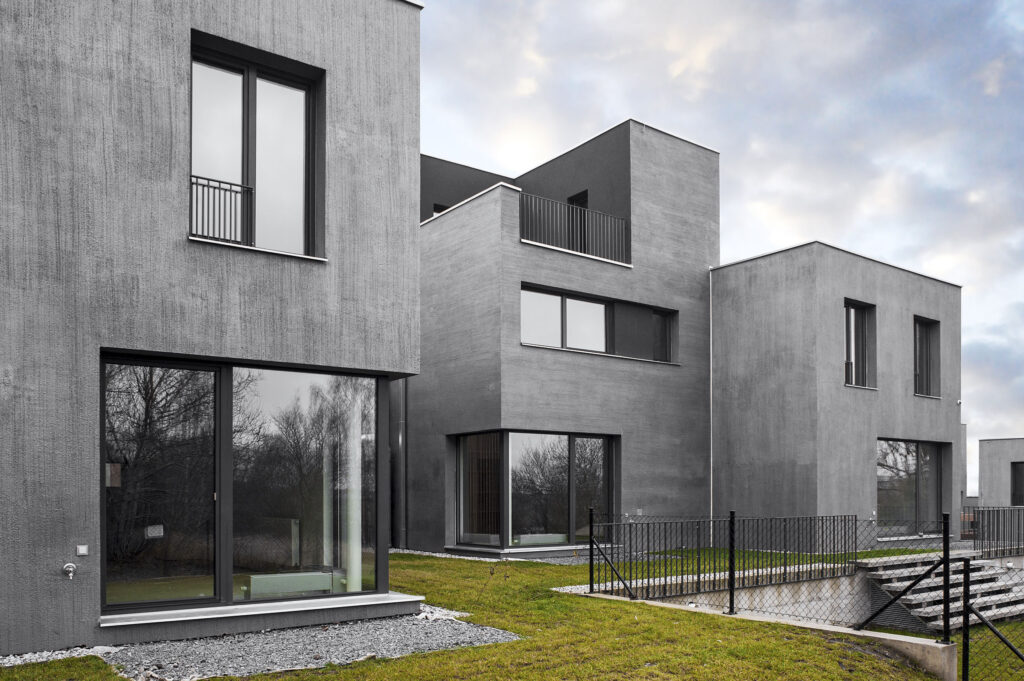 Povrchová úprava omietkou imitujúca štruktúru betónu sa k niektorým typom nízkoenergetických stavieb vyslovene hodí (BAUMIT)