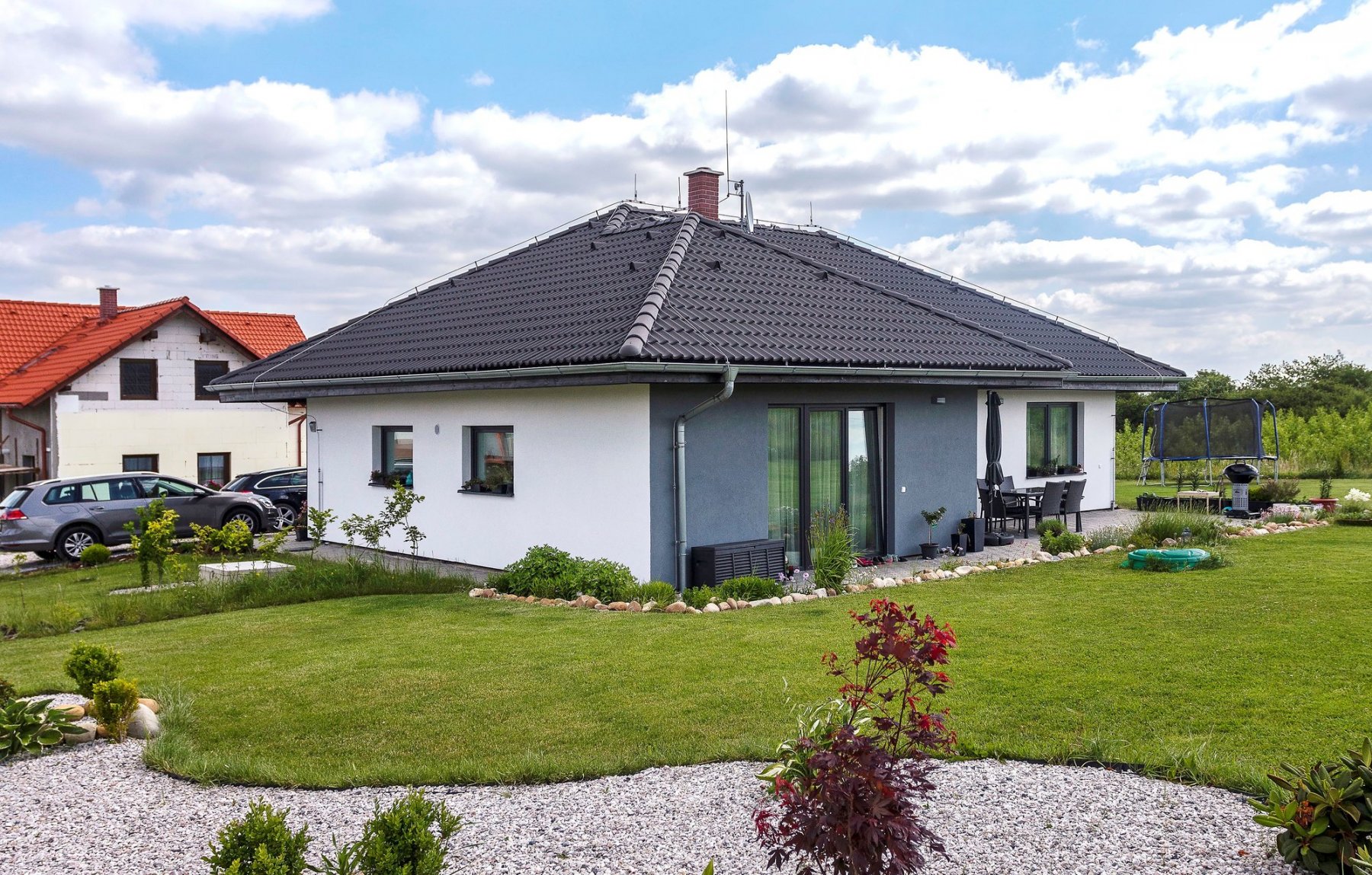 „Dôležité bolo oboznámenie sa s ponukou Ekonomických stavieb, ktoré sa síce špecializujú na typové domy, nemali však problém spracovať individuálny projekt. Ujal sa nás majiteľ spoločnosti a počas dvoch alebo troch stretnutí sme sa dohodli, ako bude všetko fungovať. My sme povedali, akú máme predstavu, a oni sa nám snažili vyjsť vo všetkom v ústrety. Náš projekt sme upravili spoločne tak, aby nám dom čo najviac vyhovoval,“ prezradil pán domu. Zmluvu podpísali začiatkom roka a pustili sa do vybavovania hypotéky. Stavať začali na začiatku augusta a nasťahovali sa po desiatich mesiacoch.