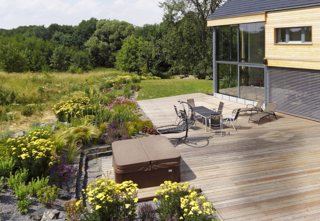 Z pôvodnej štúdie zatiaľ nevyťažili všetky nápady. Rozšírený priestor počíta s priestrannou terasou, bazénom, pobytovým trávnikom a kvetnatou lúkou, s miestom pre bylinky a zeleninu. Súčasťou veľkorysého priestoru by mal byť aj samostatný altánok so zelenou strechou. „Všetky záhrady potrebujú čas, najprv sa musia plne zapojiť všetky spoločenstvá, najmä tie v blízkosti rodinného domu,“ dodáva záhradný projektant.